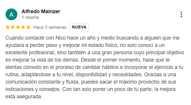 Soy Nicolás Husson, entrenador personal online y presencial, con más de 14 años de experiencia ayudando a personas a perder grasa, mejorar su salud y recuperar su forma física sin dietas extremas ni entrenamientos sin sentido.